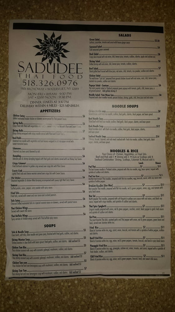 Welcome to Sadudee Thai Food, a cherished culinary gem nestled in the heart of Wynantskill, NY. Known for its authentic Thai flavors and hospitable ambiance, this restaurant has firmly established itself as a local favorite for both casual diners and serious food enthusiasts alike.